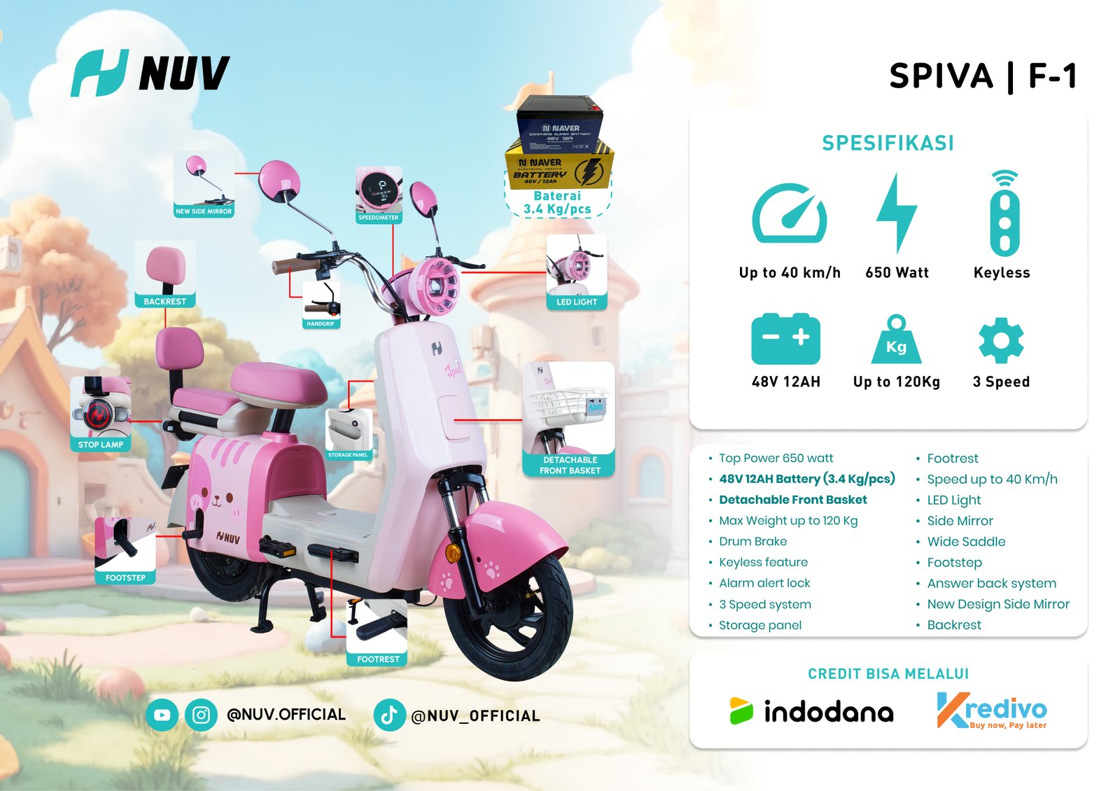 Bawa penumpang atau barang lebih dengan kapasitas beban hingga 120 Kg