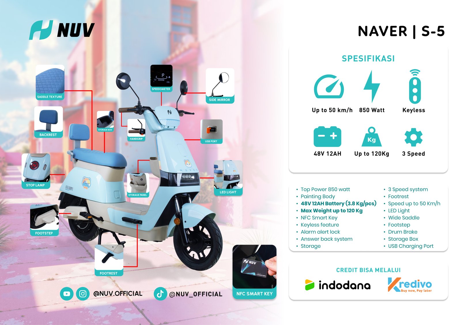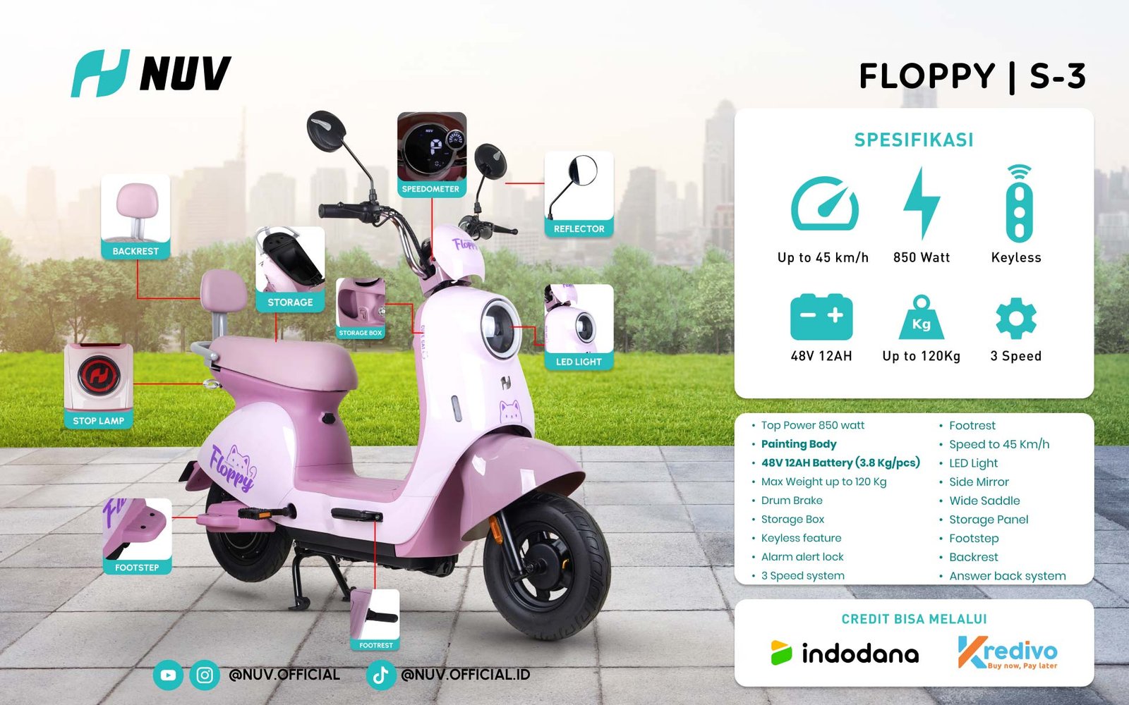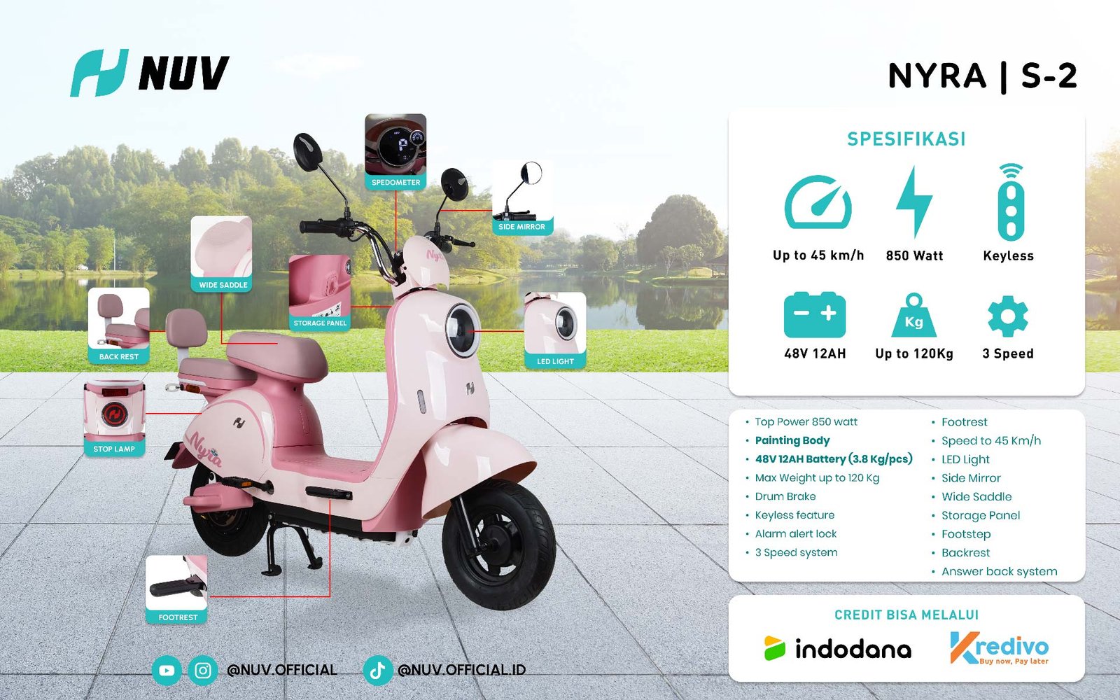 Dengan daya baterai 850 Watt untuk berkendara lebih lama